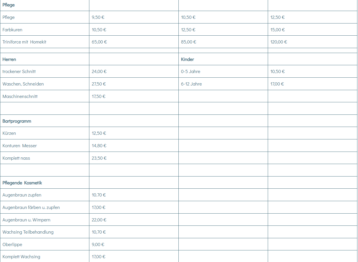 Bei uns findest du eine Vielfalt an Dienstleistungen, vom Haarschnitt, über Farbe, Kosmetik, Dauerwelle bis hin zu Extensions. Für jung und alt, Männlein, Weiblein und allem zwischendrin bieten wir eine Bandbreite an Angeboten, also kommt gerne vorbei und lasst euch individuell beraten.
